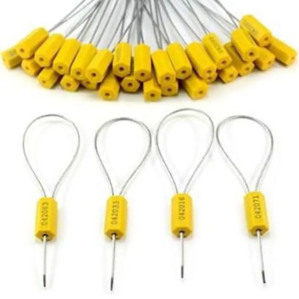 With its 40cm cable length, this wire seal is suitable for a wide range of industrial and commercial uses, including logistics, freight transportation, oil drums, storage tanks, courier bags, and warehouse security. The bright yellow plastic cap also allows for custom numbering or labeling, helping businesses maintain accurate tracking and inventory control.